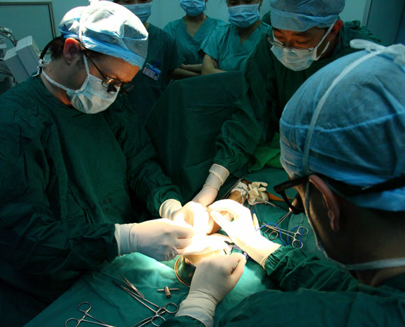This past January, HandReach led a team of experts in hand surgery and rehabilitation (two surgeons, three rehabilitation therapists, and one nurse), to lead a week-long Hand Clinic at the China General Air Force Hospital in Beijing. The team offered 85 surgical procedures and dozens of hours of individualized hand therapy for patients at the pediatric burn unit, totaling several hundred thousand US dollars in free care. The team also trained two dozen Chinese hospital staff – surgeons, rehabilitation therapists, and nurses – together with the patients' parents, and left the hospital with numerous articles and procedures on disk for subsequent training. If you are a clinician interested in joining us this winter, please contact the Program Coordinator at brecken@handreach.org.